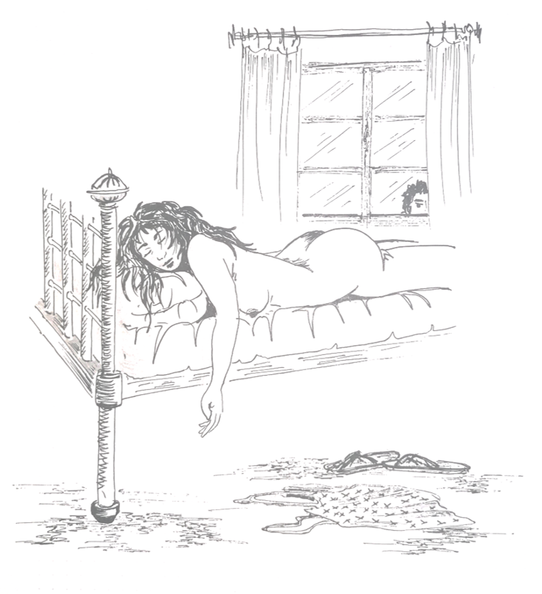 بێدهنگ پێشم کهوت و دهرگای ماڵهکهی کردهوه، به داڵانهکهدا بۆ ژوورێک له پشتهوهی ماڵهکه چووین. دوای ئهوهی گڵۆپی ژوورهکهی داگیرساند، خێرا بێ ئهوهی هیچم پێ بڵێت؛ دهستی کرد به داکهندنی جلهکانی. له تهنیشتیهوه ڕاوهستابووم و بهسهرسامییهوه له قژه ڕهش و پێسته گهنمڕهنگییهکهیم دهڕوانی. بهڕووتی هاته بهردهمم و جانتاکهی له شانم کردهوه و فڕێی دایه سهر زهوییهکه، لهو کاتهدا بهههڵهشهییهکهوه پهلاماری جانتاکهم دا، دیسان به گرتم به دهستمهوه، زهردهخهنهیهکی بۆ کردم و دهستی کرد به کردنهوهی قۆپچهی کراسهکهم، دهستی هێنا به ڕانمدا و بهنازهوه پرسیی: “دۆلارت پێیه یان دیناری عێراقی؟”